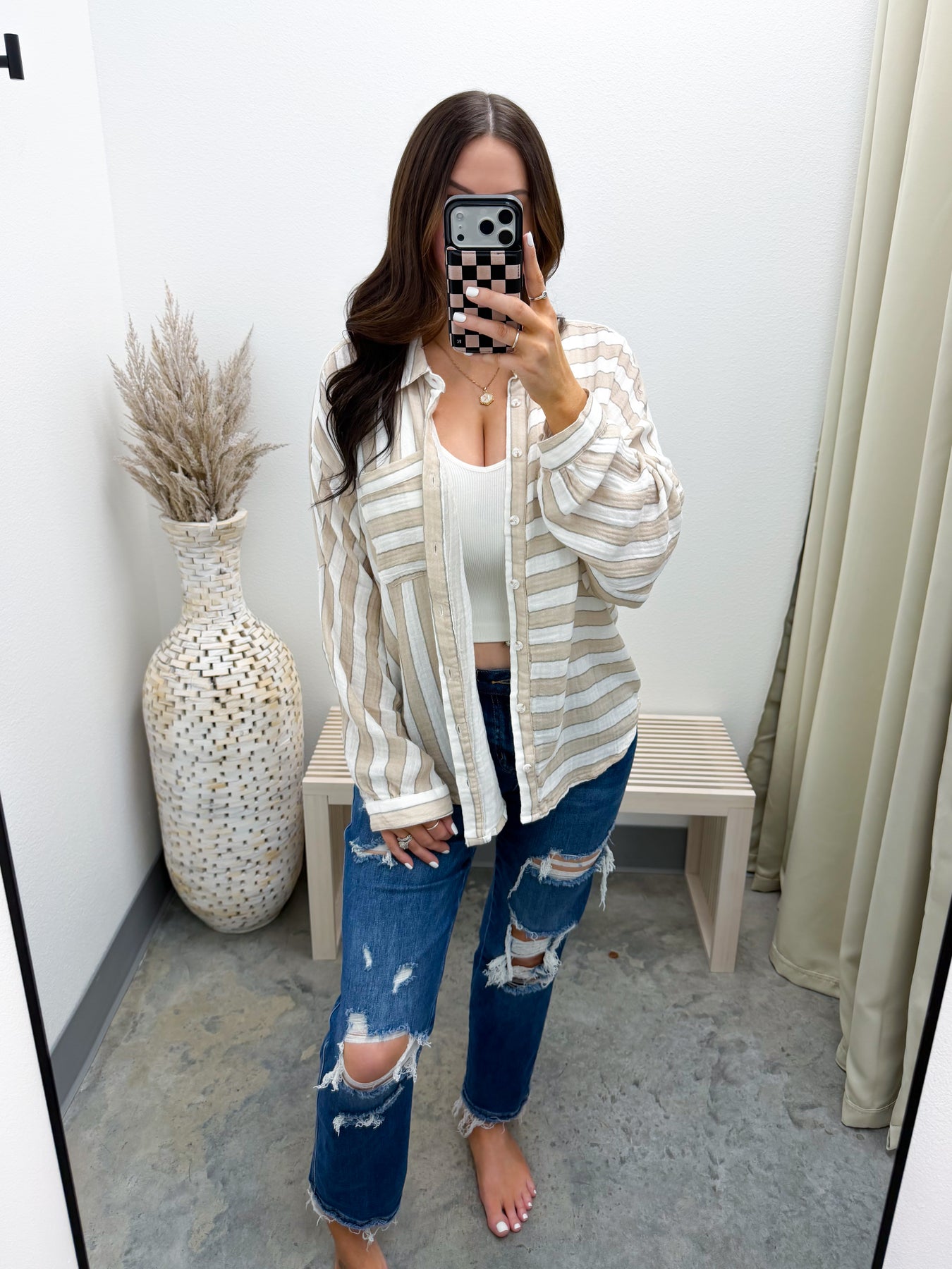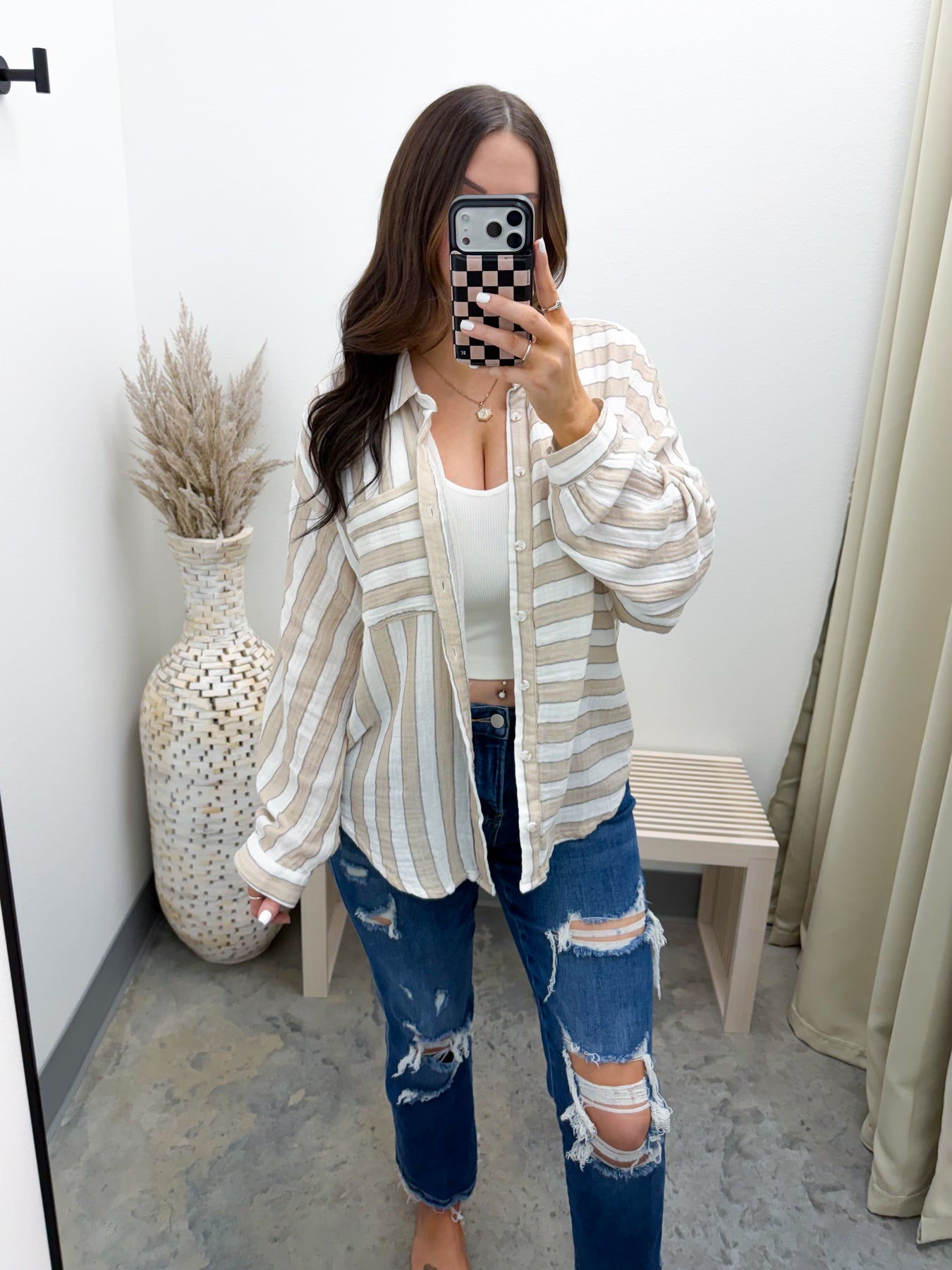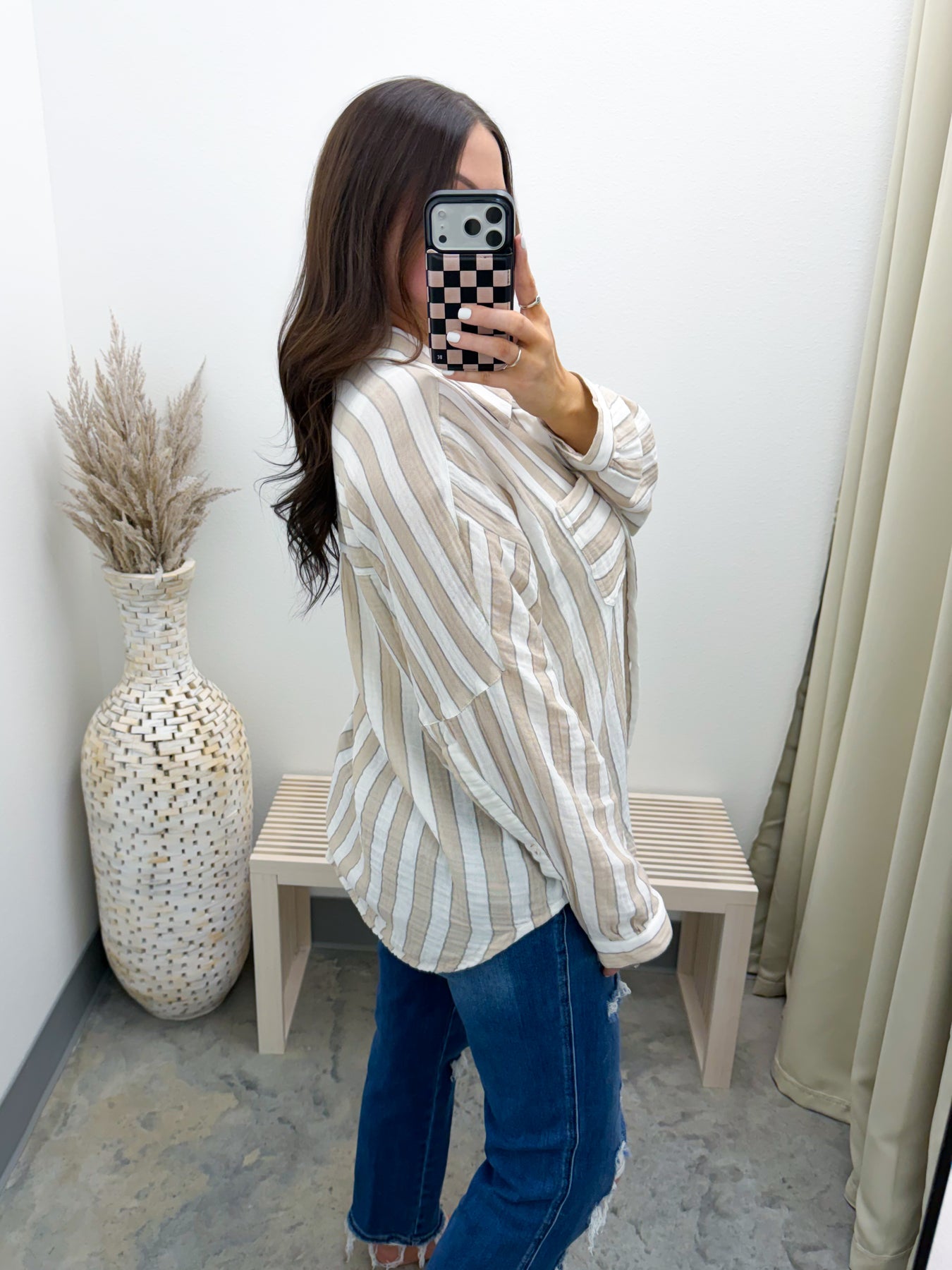 Style: Relaxed button-down long sleeve