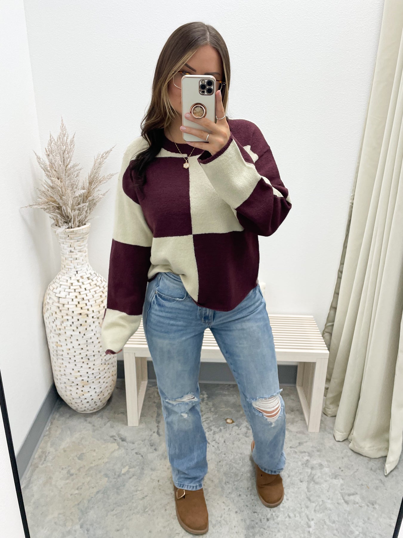Checked Out Sweater (Dark Cherry/Alpaca)